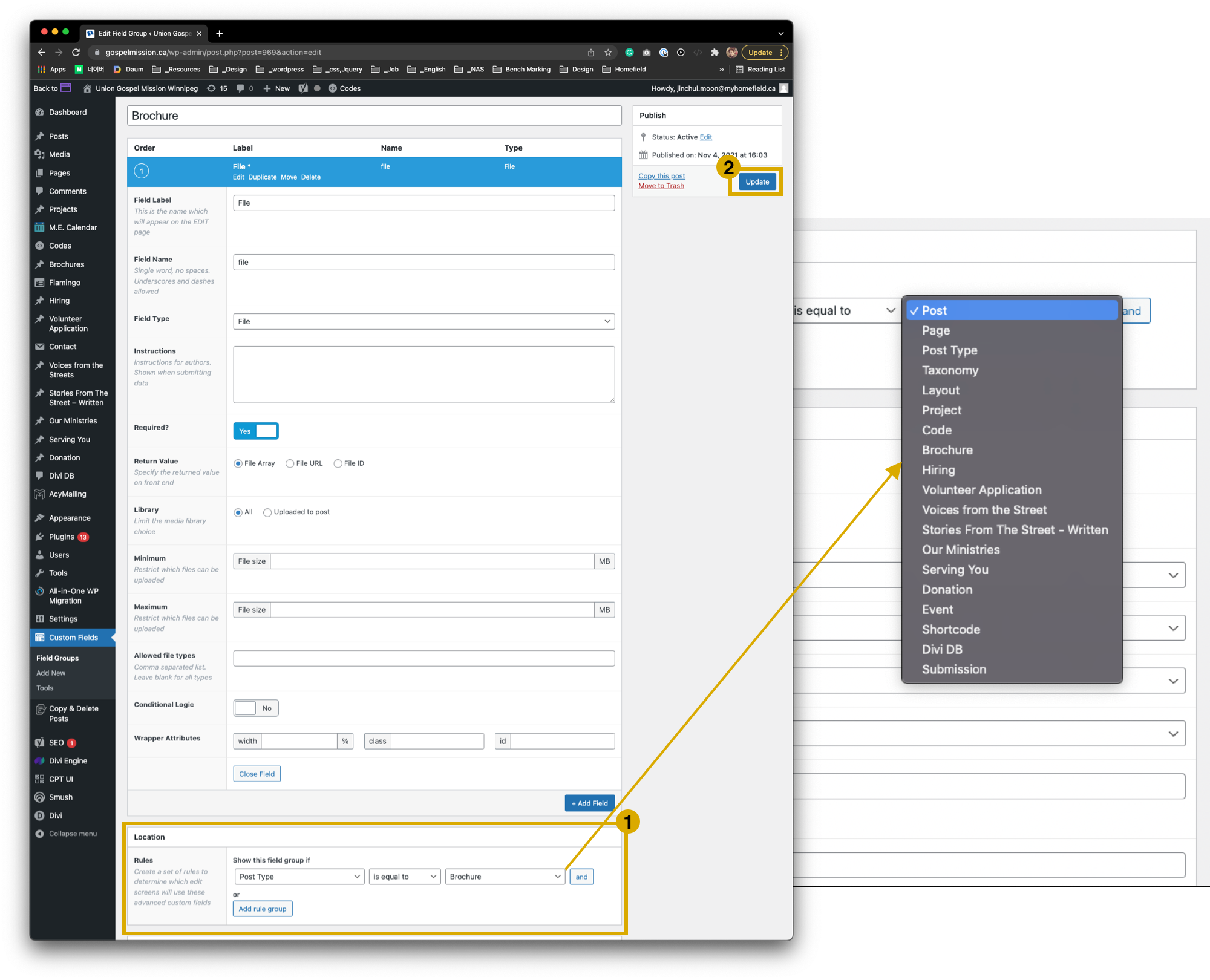 - 1. Select a Post Type what you created by Advanced Custom Field