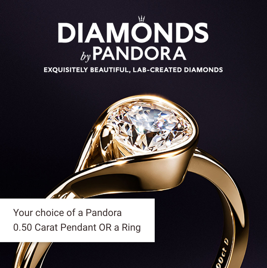 Thanks for checking in and checking out our Grand Opening. To show our appreciation, we’re giving away a 1.0 Carat Diamond, and a piece from the new Diamond by Pandora collection.